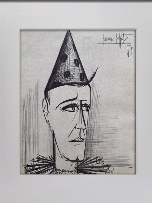 Bernard Buffet Limited Edition Lithograph Clown b/w *SIGN w/Frame Included