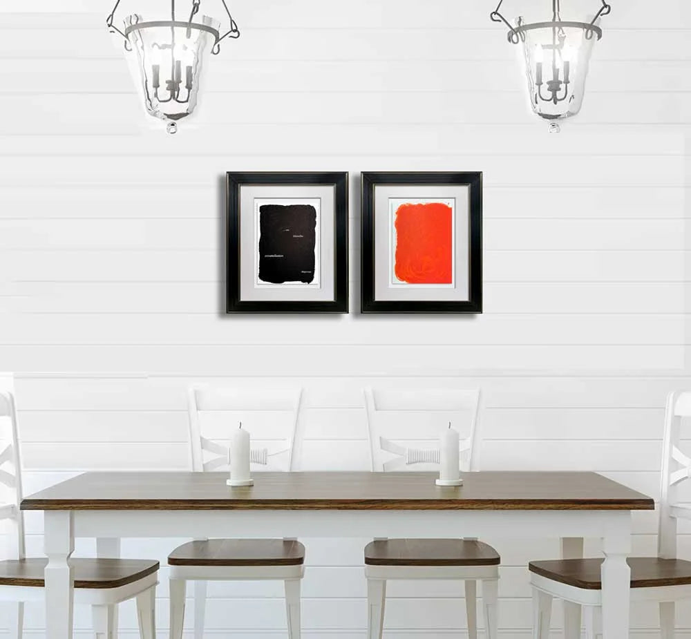 2 Limited Edition Joan Miro Lithographs in Color. Sur les presses d'Arte, Adrien Maeght, á Paris 1971. 38.1x27.9cm. ea. Limited edition lithograph on woven paper, 1971. (Rouge et une blanche constellation...) It is also Catalogue referenced by Cramer. Included with artwork are: Gallery Prepared Documentation, which includes Authentication Certificate and Prepared Color Catalogue Reference, which shows its authenticity. Professional custom cut and sized frame. Material used: Solid wood moulding, Crescent™ Acid Fee Museum Rag Mat™ + acid free backing and TruVu™ UV Protection Anti Glare Museum™ Glass. Modern Now's in-house framer constructs all of the archival framing to match the same specification of the artworks that are hung in the gallery for the preservation and protection of your artworks. Please note: Custom frame is selected upon purchase and is subject to change and our designer is happy to work with you to select a frame to match your aesthetic needs.