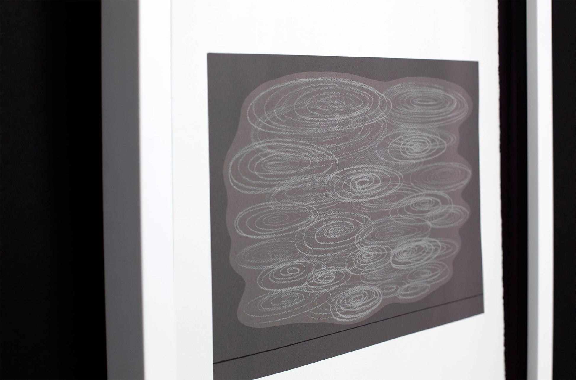 Custom frame job by a professional. The frame is selected to go with the artwork by the designer. The artwork is hing hung creating a drape inside the frame and is housed in a Solid Wood moulding. Custom Framed using a Acid Free Black backing and solid Wood Frame, UV blocking resistant Anti-Glare Glass for preservation of the art, and acid free backing. All our framing is Custom and Professional using only archival materials for the preservation and protection of all our artwork.