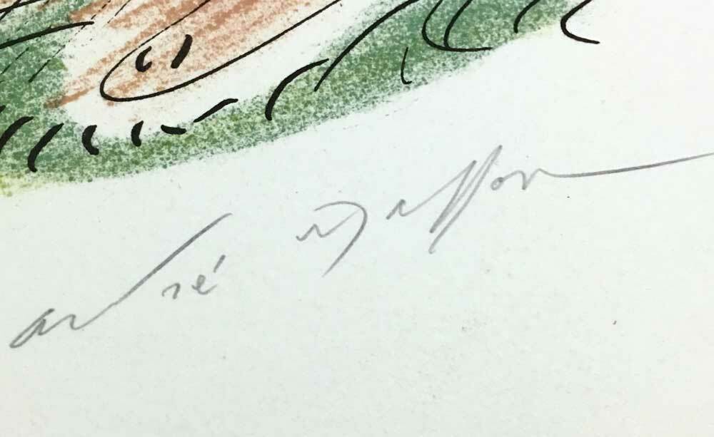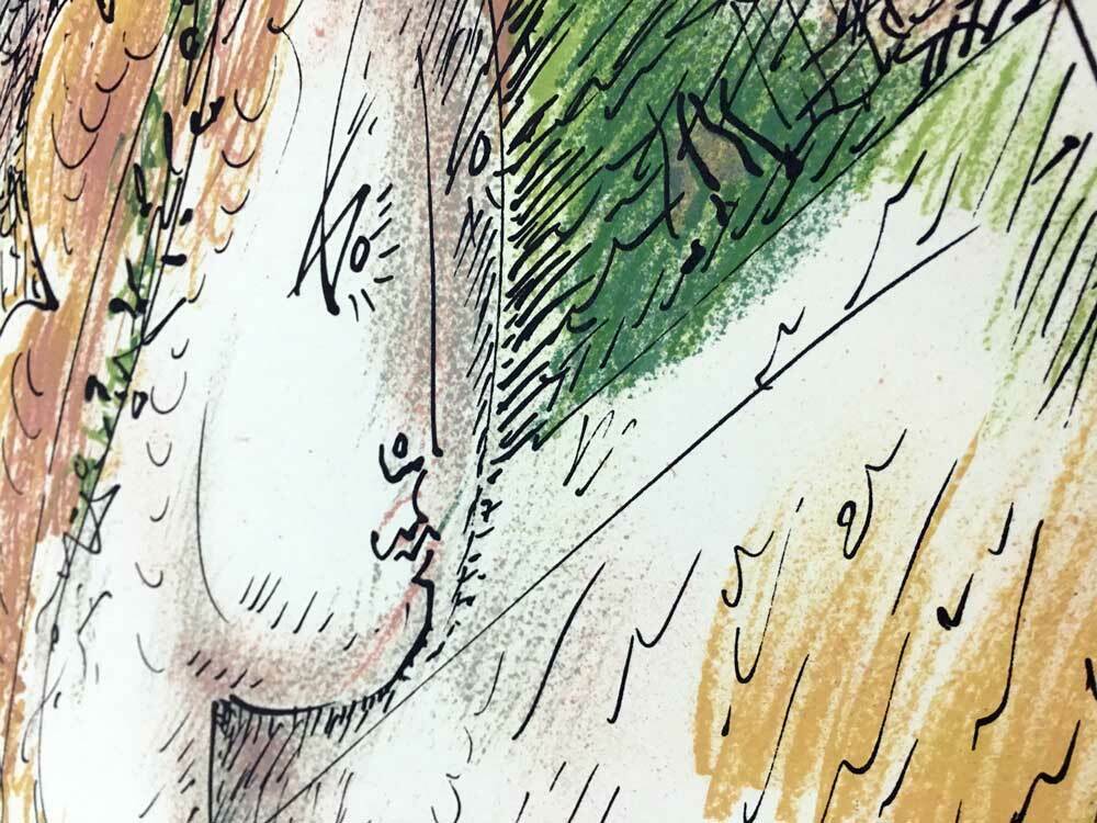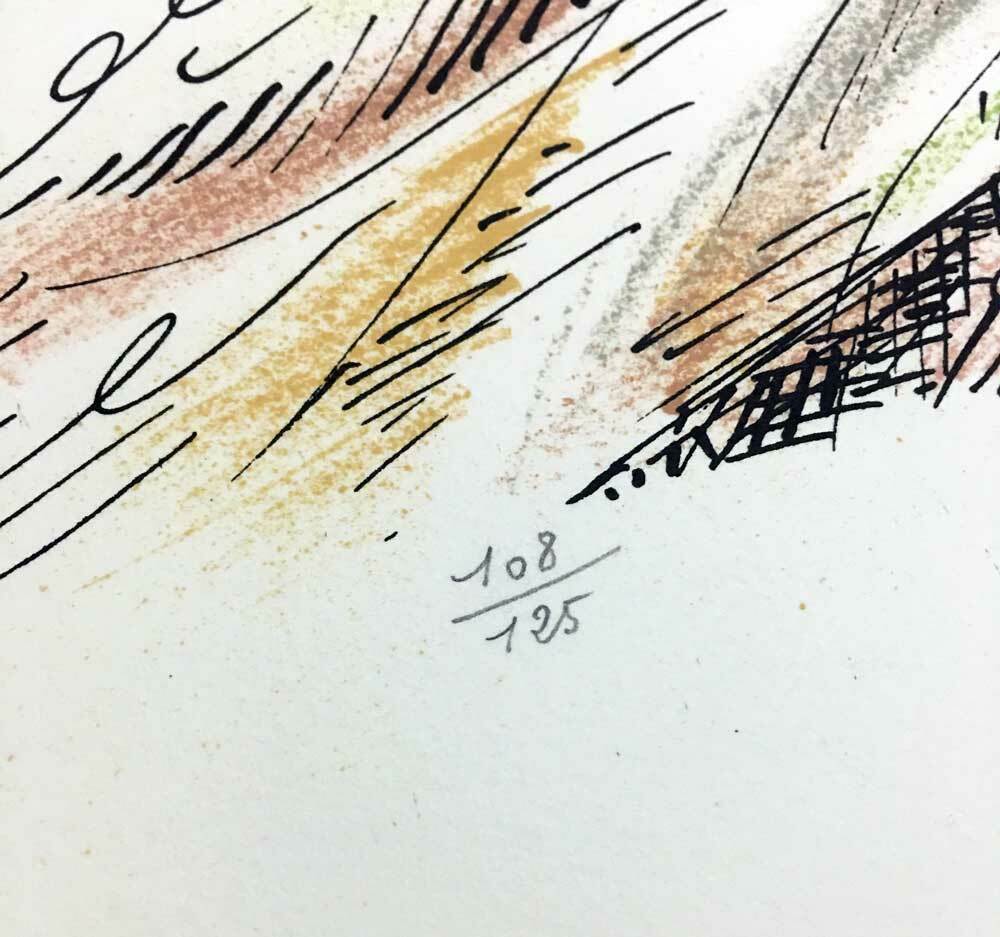 Original Hand Signed André Masson Lithograph. 1975. Size 20 x 26 1/2 in. (Framed: 26 x 32 in). Sur les presses de Mourlot, Paris, 1975. This is a Numbered Limited Edition Lithograph out of 125, this one being no. 108 (making this an extremely rare Hand signed Lithograph.) On Arches paper with deckled edges. Artwork comes with Gallery Prepared Documentation, which includes Authentication Certificate + Provenance and Numbered justification copy included with artwork