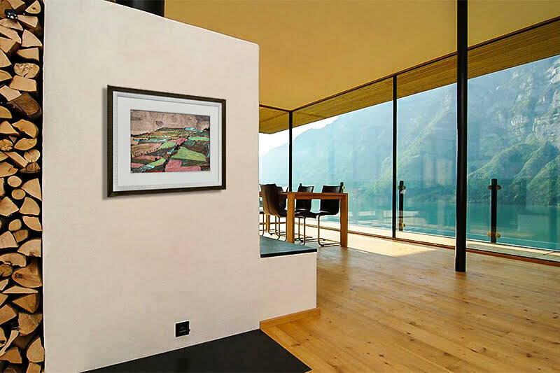Professional custom cut and sized frame. Material used: Solid wood moulding, Crescent™ Acid Fee Museum Rag Mat™ + acid free backing and TruVu™ UV Protection Anti Glare Museum™ Glass. Modern Now's in-house framer constructs all of the archival framing to match the same specification of the artworks that are hung in the gallery for the preservation and protection of your artworks.