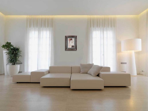 Professional custom cut and sized frame. Material used: Solid wood moulding, Crescent™ Acid Fee Museum Rag Mat™ + acid free backing and TruVu™ UV Protection Anti Glare Museum™ Glass. Modern Now's in-house framer constructs all of the archival framing to match the same specification of the artworks that are hung in the gallery for the preservation and protection of your artworks.