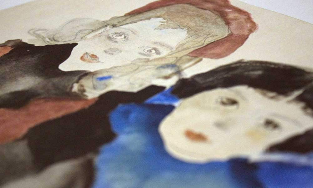 Schiele Lithograph Gouache titled Two Little Girls. 1911. Size : 30.5x40cm. Frame Size: 22 x 25 3/4in. It is a numbered Limited Edition of 100 and has exemplaire Authentication numbered out of 100 from the Presses of Max Jaffe, Vienna 1969 and is on heavy laid paper. Signed and dated in the matrix (Egon Schiele 1911). Originally made by Schiele as a gouache and watercolour in 1911 Pencil, watercolour and gouache. Artwork comes with Gallery Prepared Documentation, which includes Authentication Certificate from Gallery + Provenance Plus a Numbered justification copy included with artwork.
