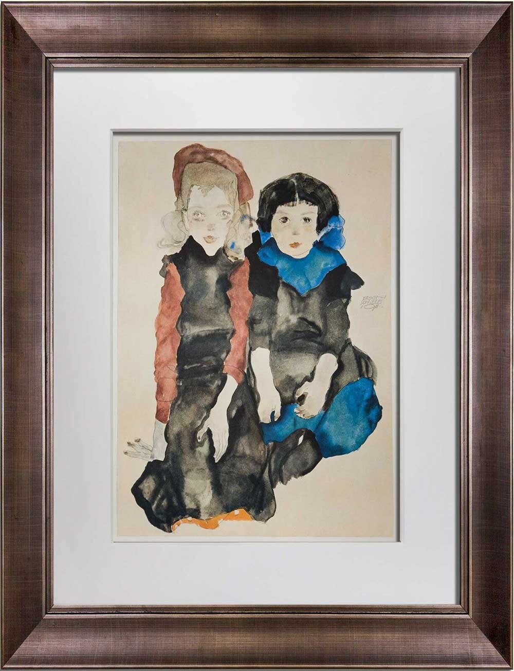 Egon SCHIELE Lithograph “Two Little Girls” SIGNED #‘ed Limited Ed: w/Frame