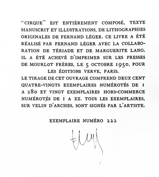 Original Léger Limited Edition Lithograph. Size : 27,9 x 33,8 cm. This is from a Limited Edition (280), this one being no. 222. Sur le presses de Mourlot Fréres, 1950. On Velin d’Arches paper, made special for editions Verve in 1950 only 300 were made of which 20 were hc (hors-commerce), this is one of the numbered editions (222/280). This is a very rare Léger. Artwork comes with Gallery Prepared Documentation, which includes Authentication Certificate + Provenance Plus a copy of a Signed and numbered colophon. This is very a rare 1950's Léger lithograph, one edition of this lithograph is in the MOMA archives (not currently on view) on loan from The Louis E. Stern Collection.