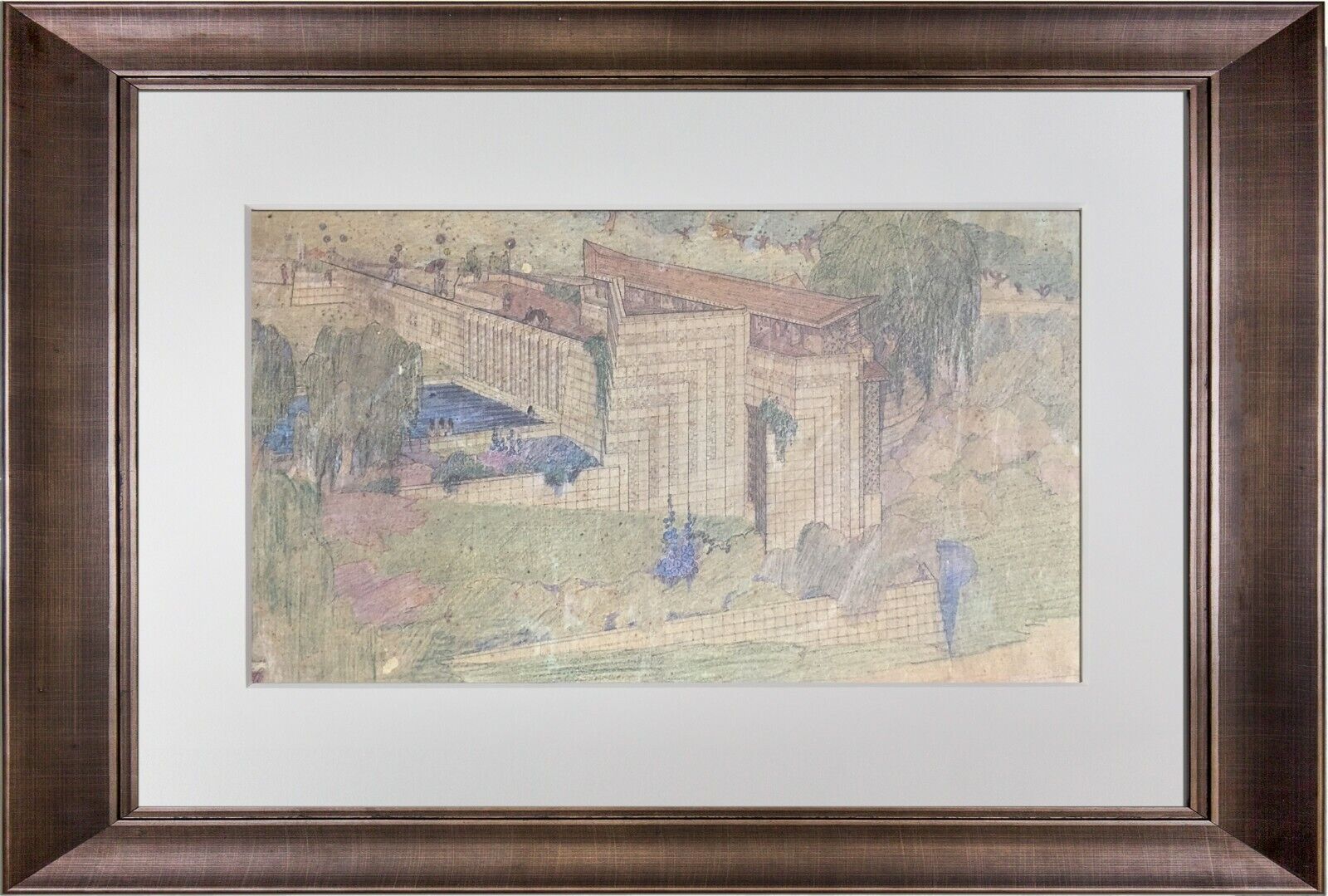 Frank Lloyd WRIGHT Lithograph "Kindergarten for Aline Barnsdall, LA.." 1923