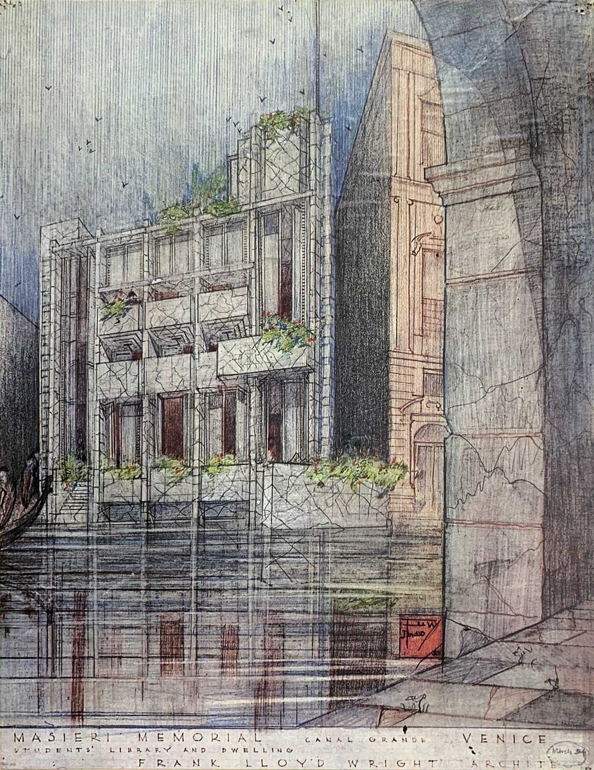 Limited Edition Frank Lloyd Wright Lithograph. Project: Masieri Memorial, Venice, Italy, 1953. Size : 26 x 33.2cm. Frame Size: 20 1/2 x 23in. The red square with Frank Lloyd Wright in block letters is a registered trademark belonging to the Frank Lloyd Wright Foundation. It is a numbered Limited Edition which has justification Authentication of which a copy is included. Licensed Limited Edition by the Frank Lloyd Wright Foundation. Artwork comes with Gallery Prepared Documentation, which includes Authentication Certificate + Provenance Plus a Numbered justification copy included with artwork.