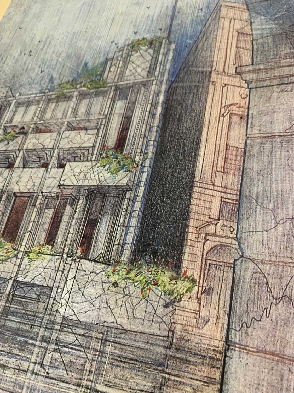 Frank Lloyd WRIGHT Lithograph "Masieri Memorial, Italy" LIMITED Ed. w/Frame