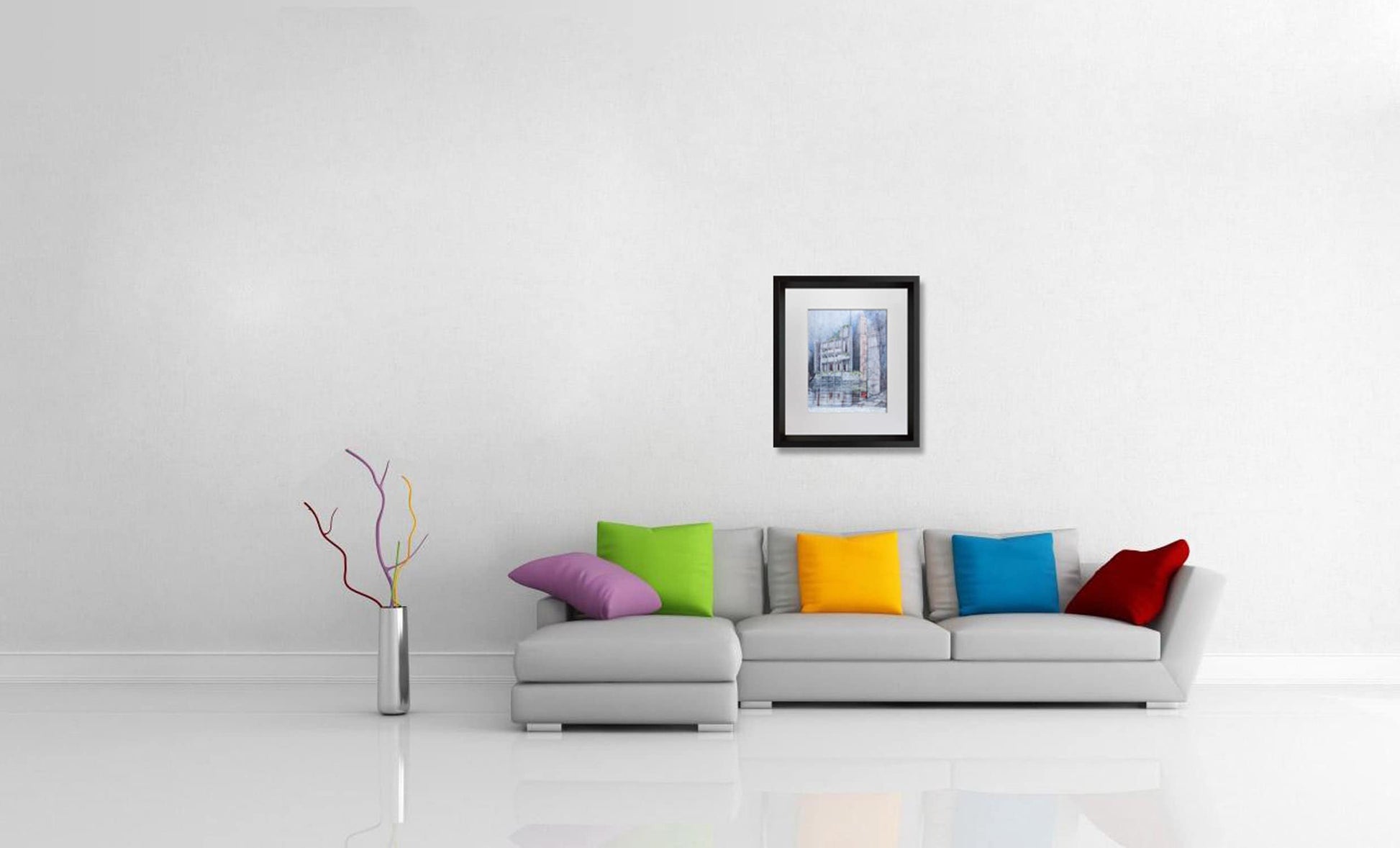 Professional custom cut and sized frame. Material used: Solid wood moulding, Crescent™ Acid Fee Museum Rag Mat™ + acid free backing and TruVu™ UV Protection Anti Glare Museum™ Glass. Modern Now's in-house framer constructs all of the archival framing to match the same specification of the artworks that are hung in the gallery for the preservation and protection of your artworks.
