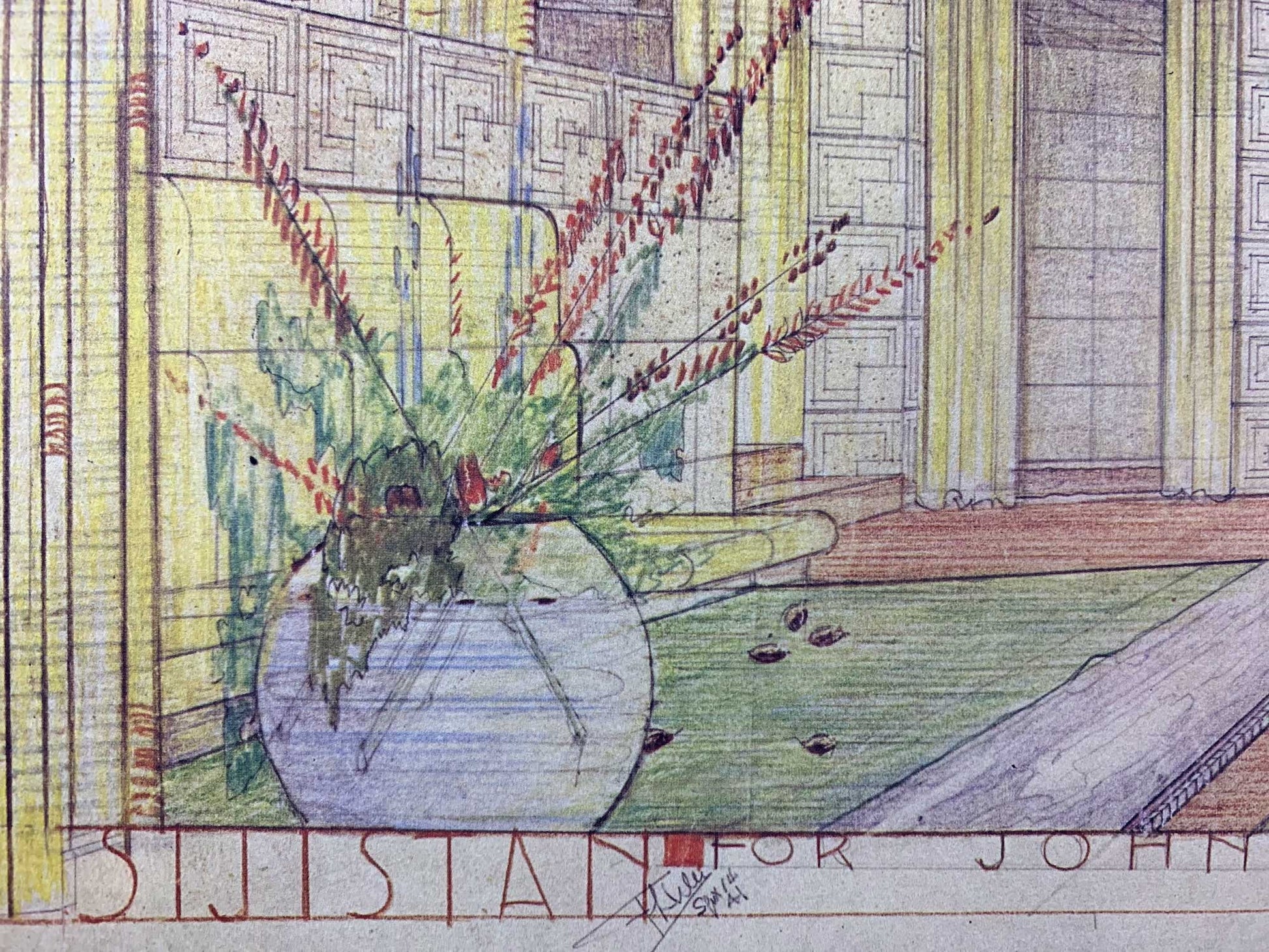 Frank Lloyd WRIGHT Lithograph SIGN "Sijistan" Remodel for Charles Ennis House