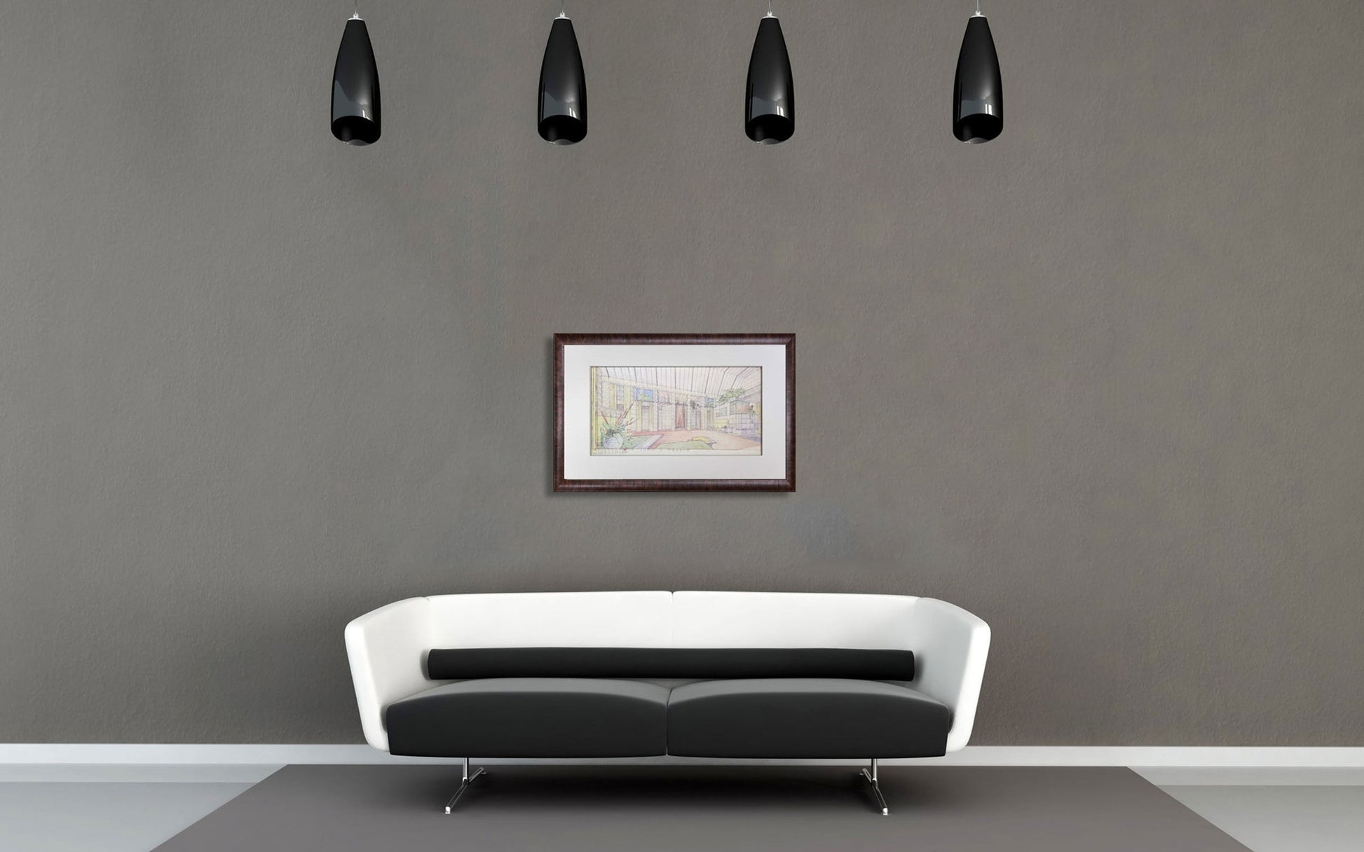Professional custom cut and sized frame. Material used: Solid wood moulding, Crescent™ Acid Fee Museum Rag Mat™ + acid free backing and TruVu™ UV Protection Anti Glare Museum™ Glass. Modern Now's in-house framer constructs all of the archival framing to match the same specification of the artworks that are hung in the gallery for the preservation and protection of your artworks.