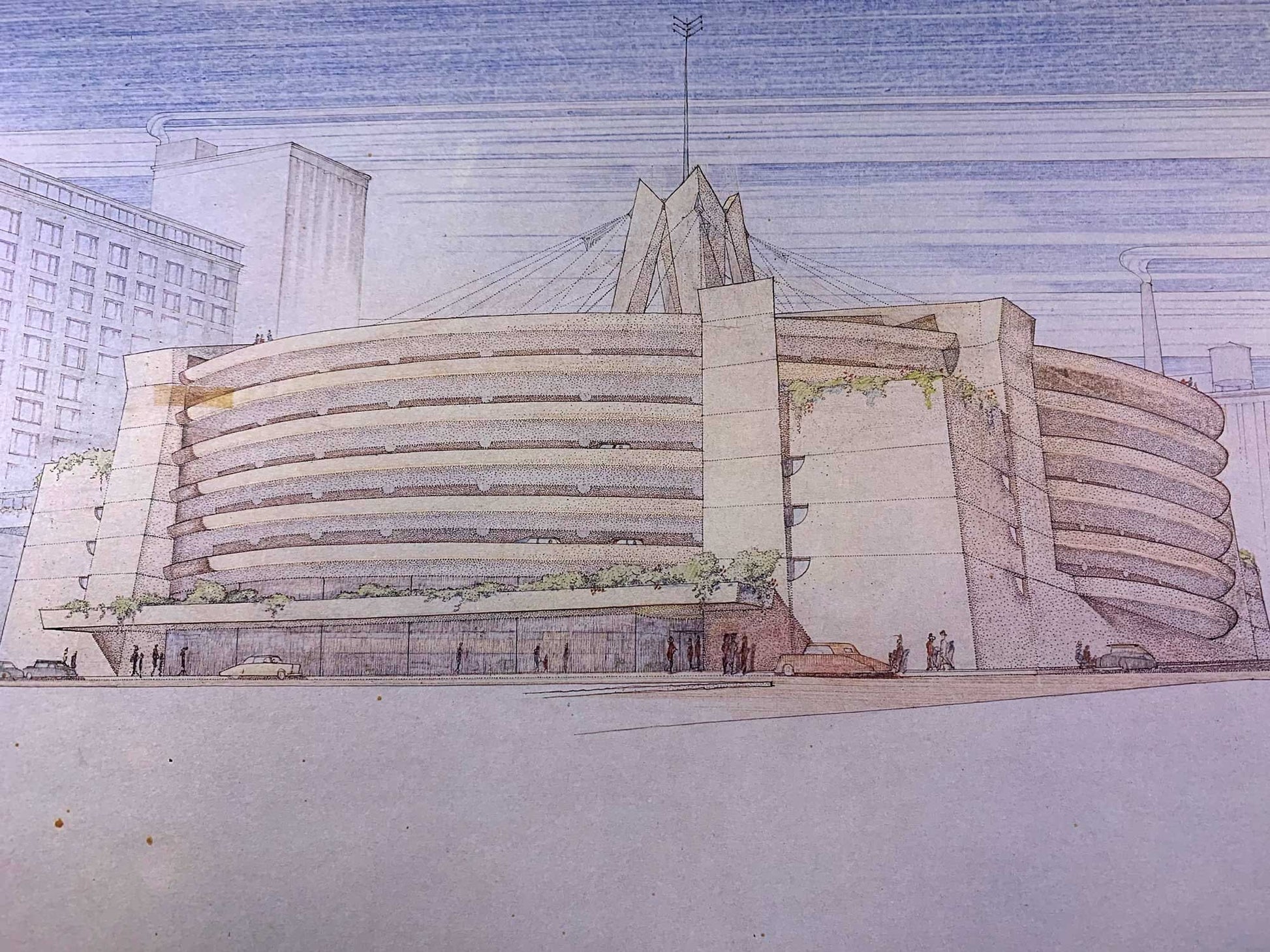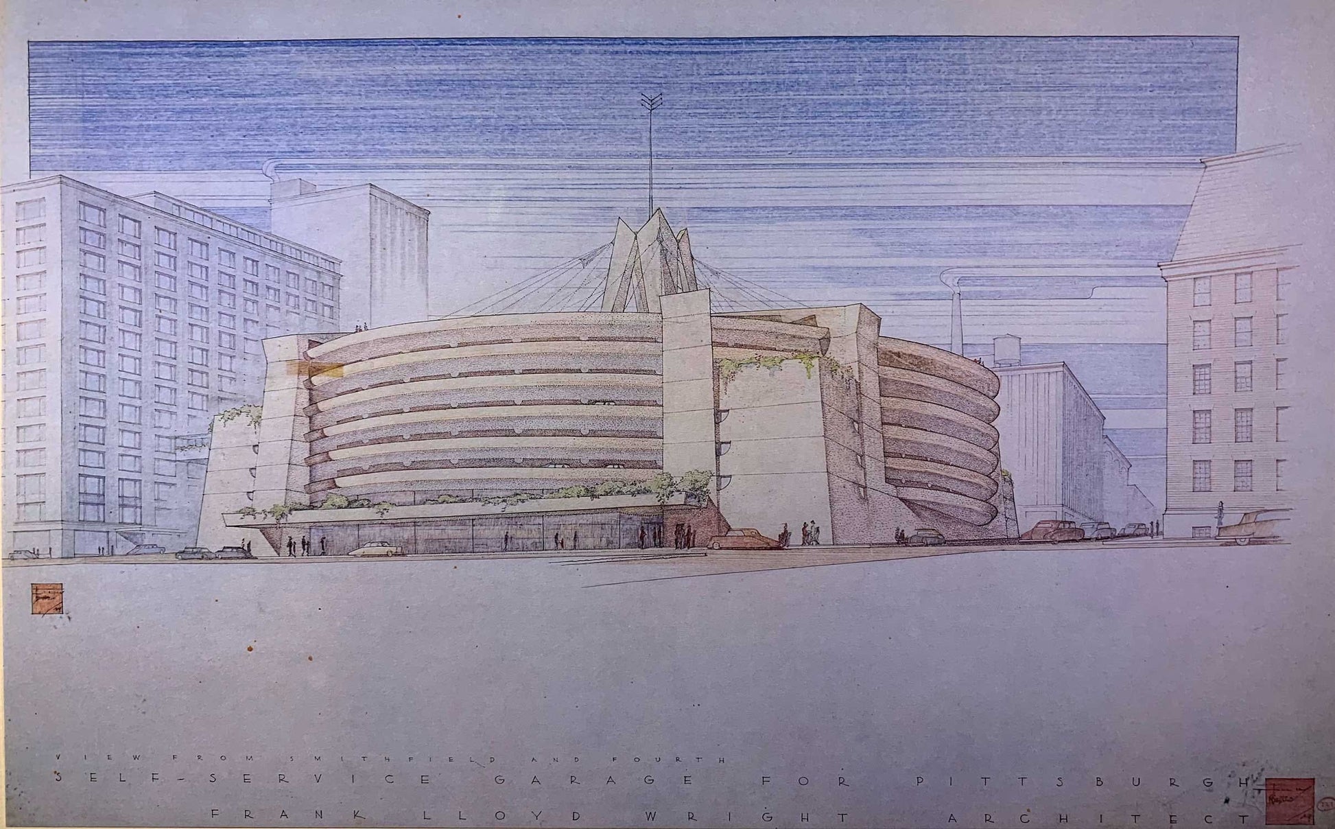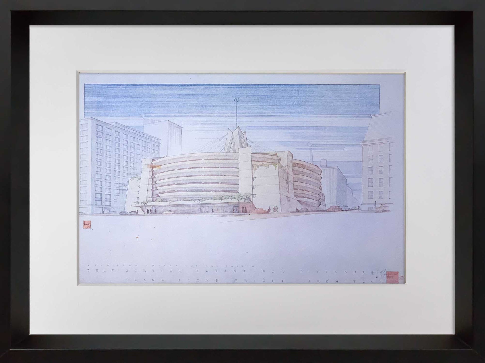 Frank Lloyd WRIGHT Lithograph SIGNED "Edgar J. Kaufmann Garage" Pa w/FRAME