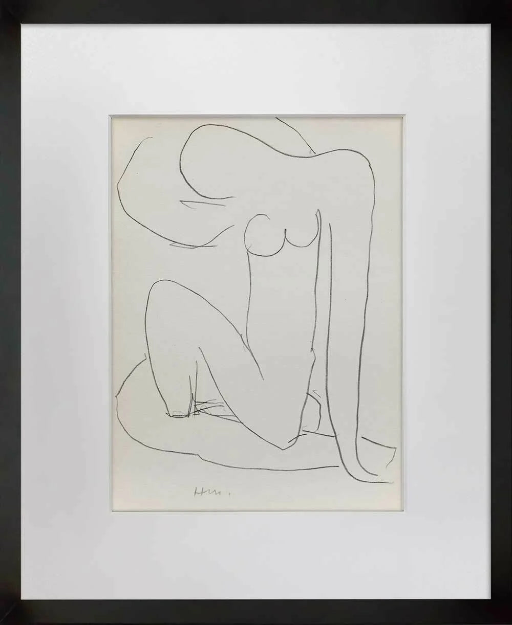 Original Henri Matisse Lithographs. 1955 (6pc Set) Size : 27x20cm. ea. Frame: 11in. x 14in. ea. Artworks are of a Numbered Limited Edition. On heavy textured paper. Signed in the matrix (HM). Sur les presses de Daniel Jacomet 1955. Numbered limited edition out of a total of 500, this one being no. 237. Artwork comes with Gallery Prepared Documentation, which includes Authentication Certificate + Provenance with and Numbered Justification Exemplaire, of which a copy is included. Professional custom cut and sized frame. Material used: Solid wood moulding, Crescent™ Acid Fee Museum Rag Mat™ + acid free backing and TruVu™ UV Protection Anti Glare Museum™ Glass. Modern Now's in-house framer constructs all of the archival framing to match the same specification of the artworks that are hung in the gallery for the preservation and protection of your artworks.