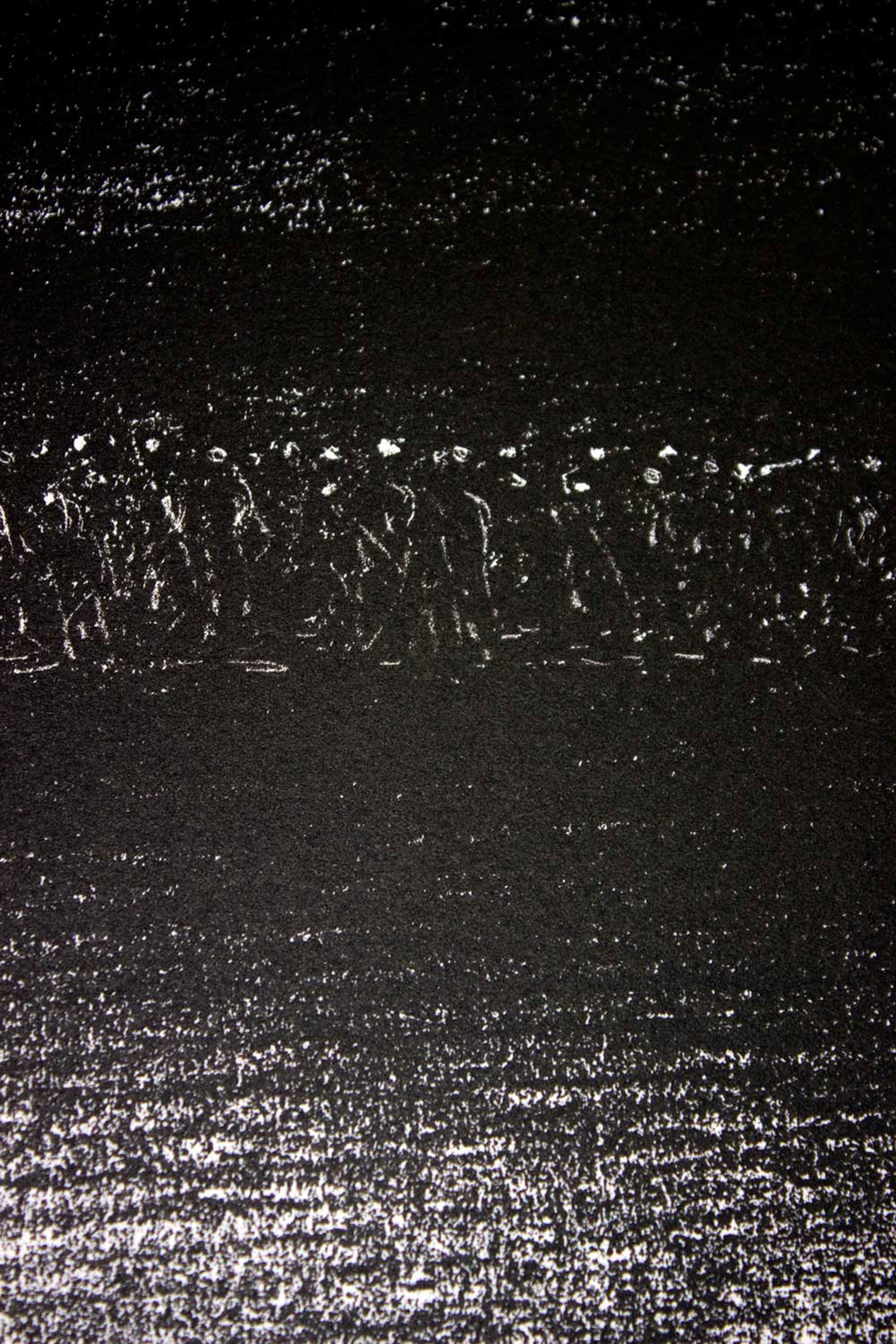 For many years Moore had owned a drawing by the French pointillist artist Seurat. Seurat created his images from tiny dots that visually gave no outline to an object thus fusing the object into its surroundings. Moore used this technique, describing it as an entirely new way of drawing, using no outlines and fusing together space and form, light, depths and distances into a marvellous and mysterious unity of vision. There was never any question of introducing colour. Moore was always after a printed image identical to the blackness of the drawing, which described something of the bleak industrial landscape and the rugged high moors of Yorkshire.