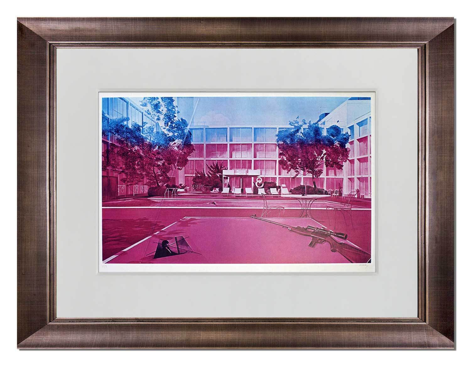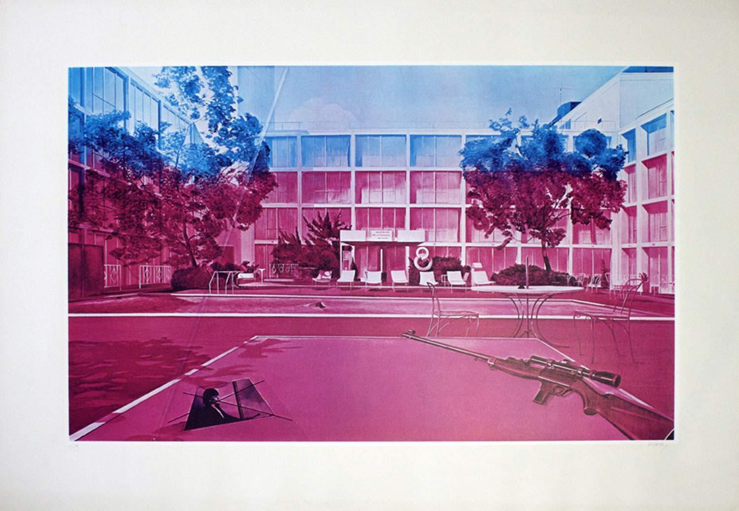 Original Color Hand Signed & Numbered Jaques Monory Serigraph, 1980. 72 x 100 cm (28 1/4 x 39 1/4 in). Fuite No. 3. This Serigraph is a Limited Edition 22/75 with the number penciled in at lower left margin and Hand Signed by Monory in lower right margin. This is a very LARGE and rare Serigraph with its low Edition Number of only 50(see image) makes it hard to get.
