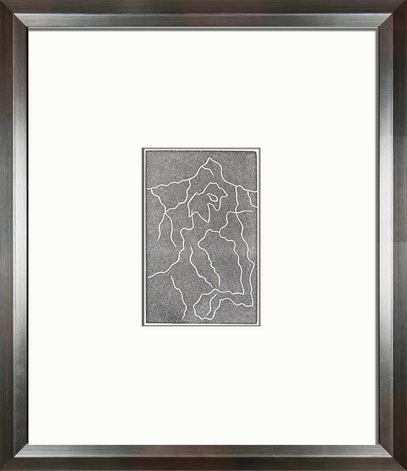 Jean Arp RARE Limited Edition Wood Engraving. Plate Size: 10,2 x 16,4cm. Frame Size: 14 x 16 1/2 in. Proofed by Kentfield: The Allen Press in 1962. The paper is all-rag Rives from France with deckled edges. Printed damp on an Acorn-Smith handpress from 1830. Has the original plate marks from the engraving. Text verso. Arp's lines relate to Yvan Goll's feelings towards his wife, Claire, and the borken ones toward human extinction. Separate color authentication paperwork prepared and included: Gallery Authentication + Provenance + Justification included.