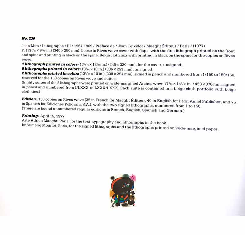 Joan Miro Original Limited Edition lithograph,. 21,5x27cm. From the presses of Arte Adrien Maeght, Paris, 1977. Separate color authentication paperwork prepared and included: Certificate of Authenticity + Provenance and Catalogue References included with Artwork: c230 (see reference) Artwork comes with Gallery Prepared Documentation, which includes Authentication Certificate and Prepared Color Catalogue Reference, which shows its authenticity (c230) (m1115)& Provenance.
