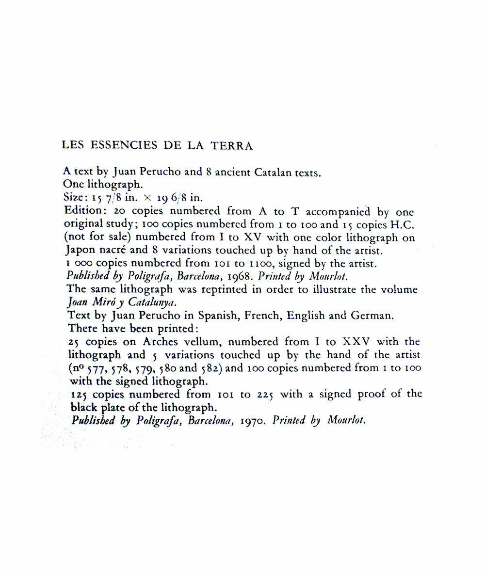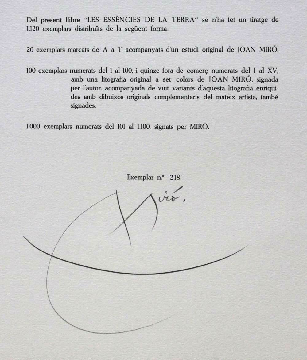 Original Miro Lithograph, 1968. Size: 37.6 x 49cm. Frame Size: 21 x 25 1/2in. This is a Limited Edition Lithograph on canvas board from the presses of La Polígrafa, S.A. Barcelona, 1968. This Original Miro Lithograph is accompanied with a copy of a Numbered Exemplar which is Hand signed in Full Signature (Miro). Edition number is 218. Separate color authentication paperwork prepared and included: Gallery Certificate of Authenticity + Justification + Provenance + 2 Catalogue References by Cramer and Mourlot. Professional custom cut and sized frame. Material used: Solid wood moulding, Crescent™ Acid Fee Museum Rag Mat™ + acid free backing and TruVu™. Modern Now's in-house framer constructs all of the archival framing to match the same specification of the artworks that are hung in the gallery for the preservation and protection of your artworks. Please note: Custom frame is selected upon purchase and is subject to change and our designer is happy to work with you to select a frame to match your aesthetic needs.