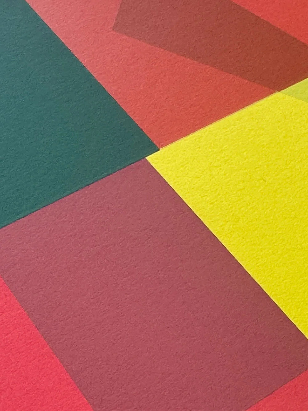 Original color Albers Silkscreen Limited Edition. Size: 25,5x33cm. The colors are part of Albers color studies in this piece. The small dot in the corner is an intentional part of Albers' color testing. This is a Limited Edition from the presses of Josef Keller, 1963. Separate color authentication paperwork prepared and included: Artwork comes with Gallery Prepared Certificate of Authenticity & Provenance.