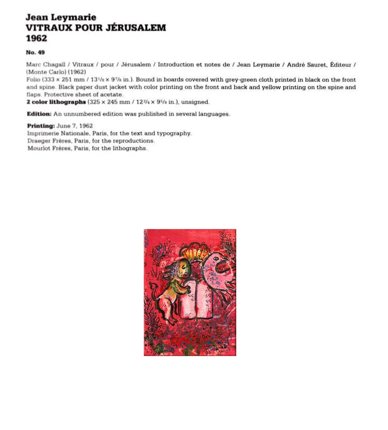 Marc Chagall Lithograph Limited Edition Original 1962 w/Cat .Ref.c49 w/Frame Included