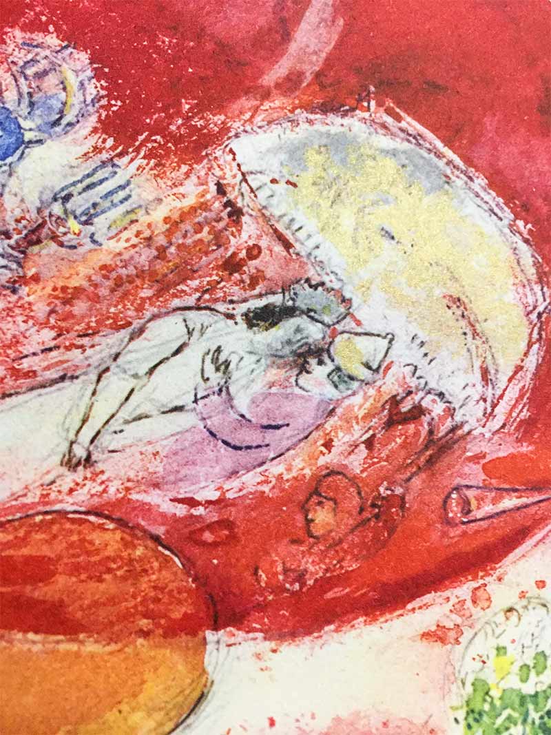Marc Chagall Limited Edition Lithograph. 48,8 x 36 cm. titled "The Wedding". This is a Marc Chagall Limited Edition Lithograph. Sketch for the backdrop for Act 3 of Igor Stravinsky's ballet The Firebird. Signed and titled in matrix (Chagall Act 3, lower left) Frame size: 14 1/4 x 19 1/4in. Limited Edition Lithograph printed on presses of Kunstanstalt Max Jaffé, Vienna, Austria 1961 and is on Büttenpapierfabrik Hahnemühle Hanover Germany (handmade paper). Signed in the matrix (Chagall). The artwork is framed using all archival materials for its preservation. This piece comes with Gallery prepared documents including Gallery Certificate and provenance additionally it comes with free Archival Framing and Shipping.