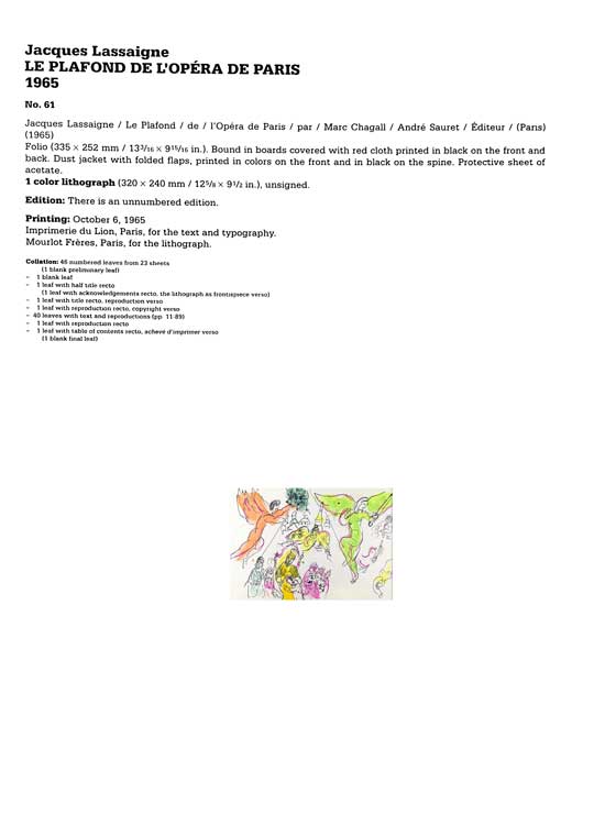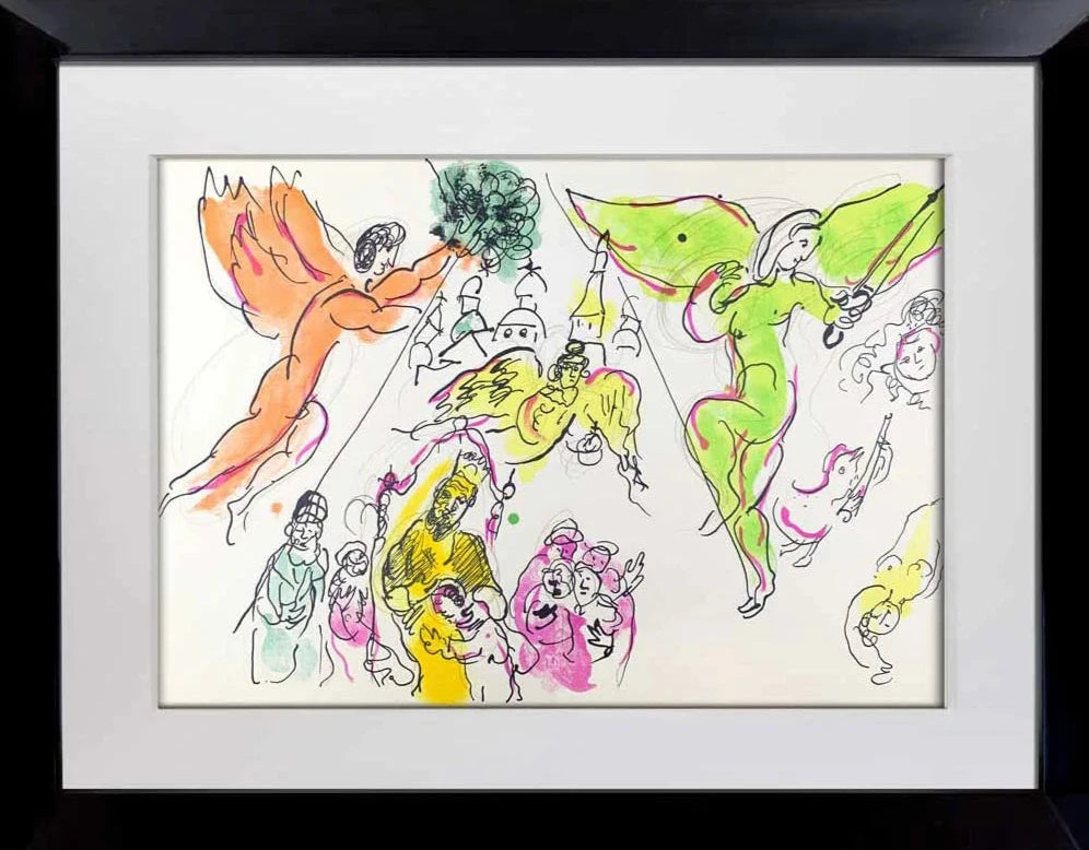 Marc Chagall Limited Edition Lithograph, 1965. Size: 32x48cm. Sketch for Mussorgsky and Mozart. Sur les presses de Mourlot Fréres, Paris, Octobre 6, 1965. Catalogue Reference Cramer 61, included. Lithograph is accompanied by separate color authentication paperwork including Gallery Certificate of Authenticity and Provenance and Cramer reference.