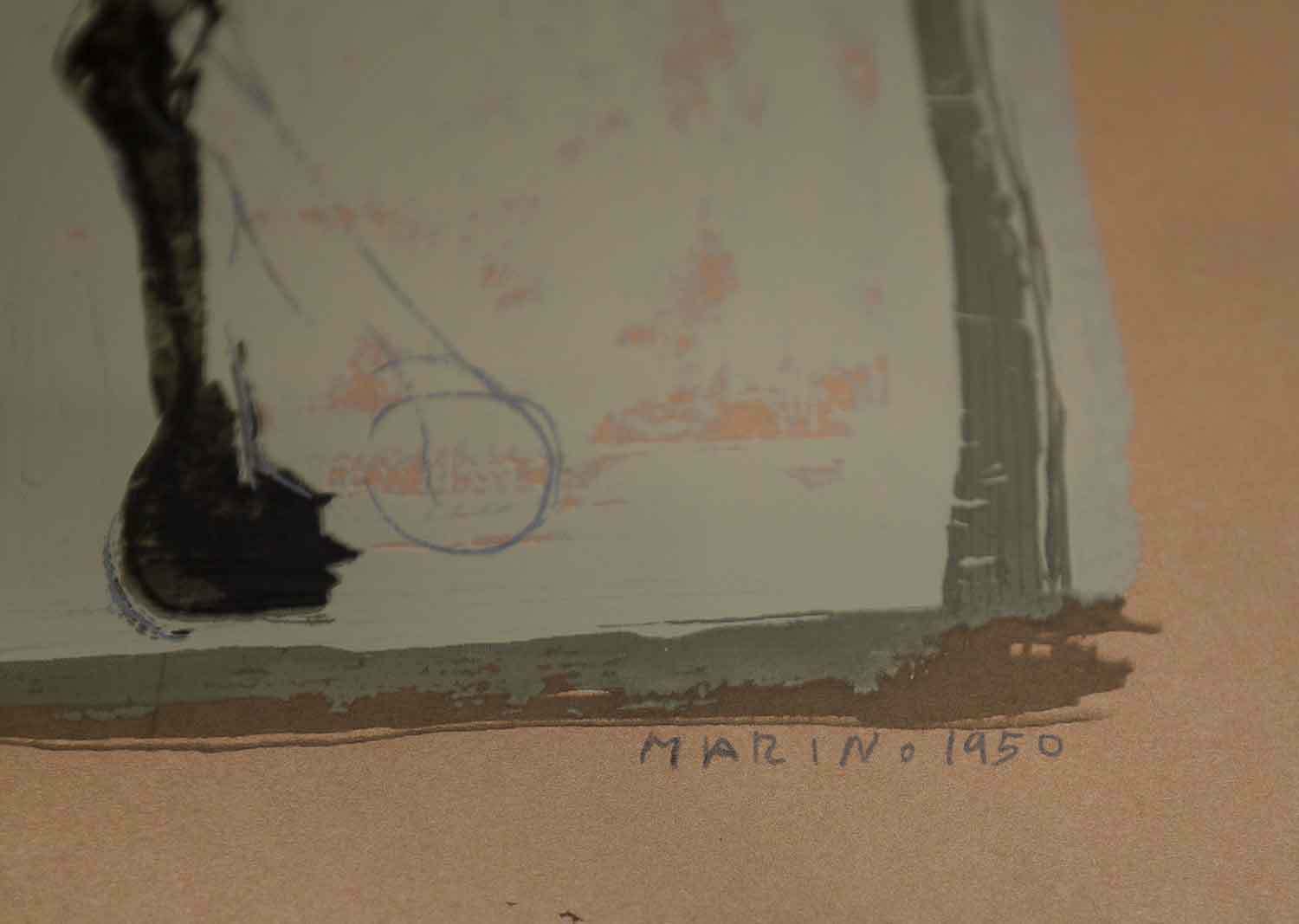 Marino Marini Limited Edition Lithograph. Size : 40.4 x 50.8 cm. Titled: Cavallo (Horse), 1950. Sur les presses de Dietz Workshop, Germany 1968. Of a Limited Edition out of 500, this one being no. 54 and on heavy woven paper. Signed in the matrix (Marino). Printing plates were cancelled, this is the special edition for the United States, Canada, Australia, Great Britain (text from justification). Artwork comes with Gallery Prepared Documentation, which includes Authentication Certificate, Provenance + copy of numbered justification. Marini is particularly famous for his series of stylised equestrian statues, which feature a man with outstretched arms on a horse. The evolution of the horse and rider as a subject in Marini's works reflects the artist's response to the changing context of the modern world. This theme appeared in his work in 1936. At first the proportions of horse and rider are slender and both are "poised, formal, and calm." By the next year the horse is depicted rearing and the rider gesturing. By 1940 the forms are simpler and more archaic in spirit; the proportions squatter...