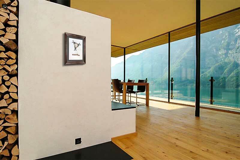 Professional custom cut and sized frame. Material used: Solid wood moulding, Crescent™ Acid Fee Museum Rag Mat™ + acid free backing and TruVu™ UV Protection Anti Glare Museum™ Glass. Modern Now's in-house framer constructs all of the archival framing to match the same specification of the artworks that are hung in the gallery for the preservation and protection of your artworks.