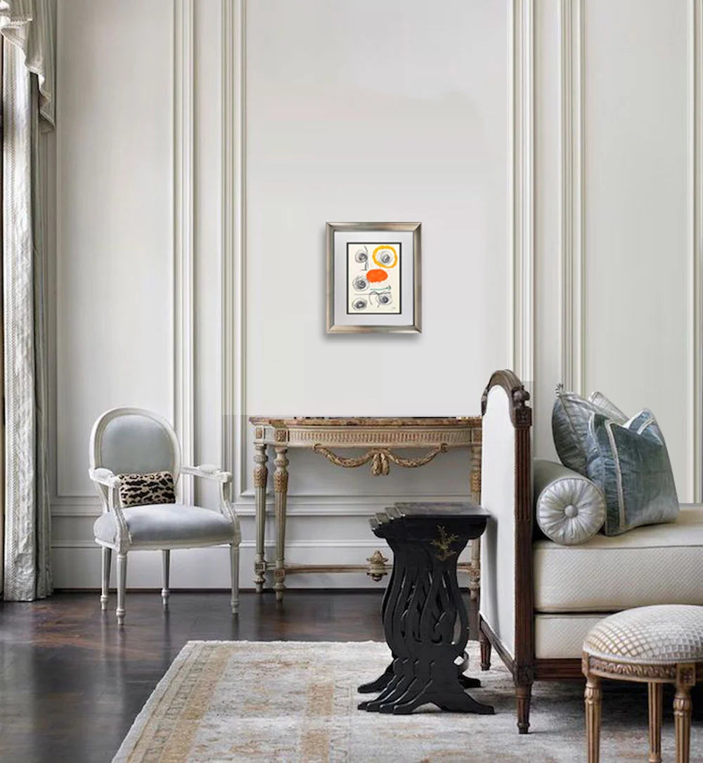 Professional custom cut and sized frame. Material used: Solid wood moulding, Crescent™ Acid Fee Museum Rag Mat™ + acid free backing and TruVu™ UV Protection Anti Glare Museum™ Glass. Modern Now's in-house framer constructs all of the archival framing to match the same specification of the artworks that are hung in the gallery for the preservation and protection of your artworks.