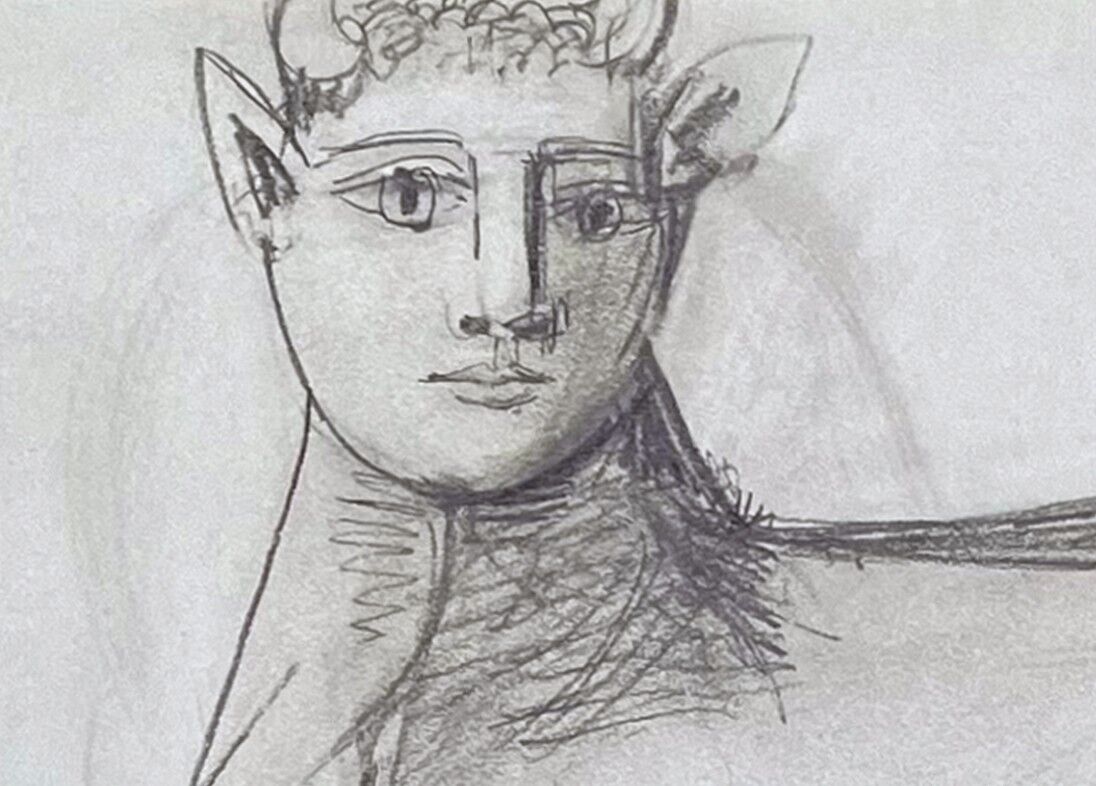 Pablo Picasso Limited Edition Lithograph. 44.8x23.8 cm. Frame Size: 27 3/4 x 19 1/4in. Minotaur. Numbered Edition Lithograph of preparatory sketch created by Picasso for his 1937 Guernica, transfer dated (11.Mai.37 I). Limited Edition no. 89. From the presses of Akademische Druck in Graz Austria 1990 with emboss stamp authentication in lower corner and S.P.A.D.E.M authorized and sealed verso. Dated in the matrix 11 May 1937 and is watermarked twice, showing authenticity (one by emboss stamp watermark and the second Watermarked showing authenticity by S.P.A.D.E.M. on reverse, see images). It was created by the artist on 11 May 1937 and is one of a Numbered Limited Edition. Included with artwork: Gallery Prepared Documentation included (Certificate of Authentication, Provenance, and Limited Edition Numbered Justification Copy).