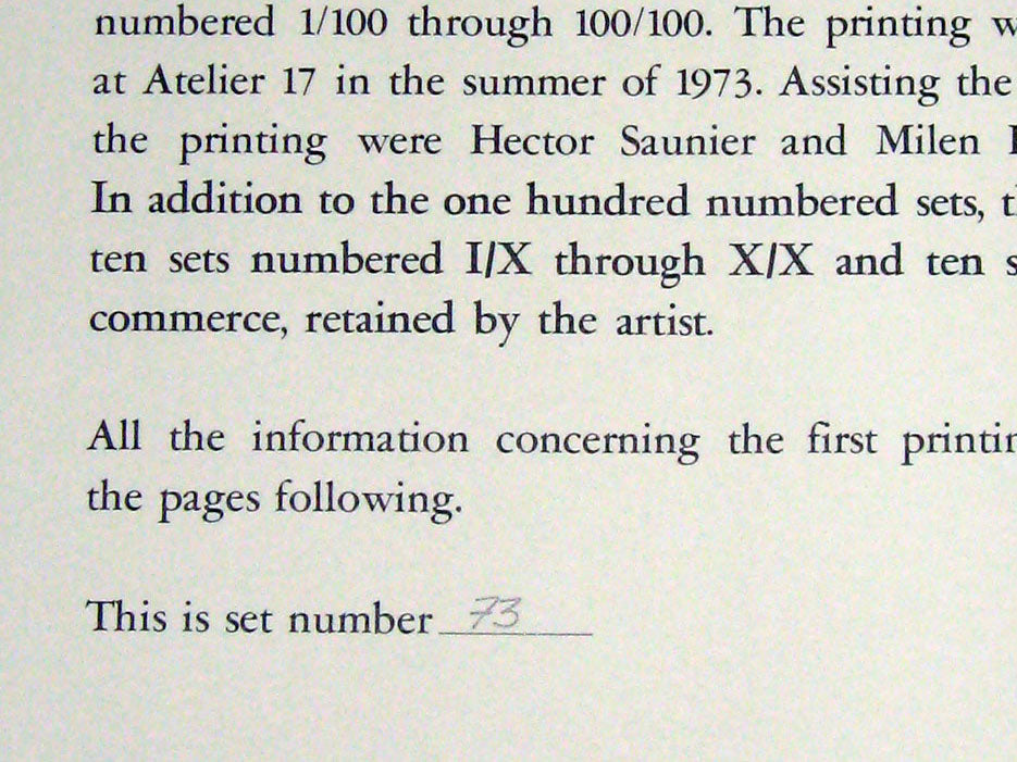 Stanley William Hayter Original Etching . On woven Barcham Green Hand Made Paper with deckled edges. Size : 9 x 11cm. Frame Size: 16 1/2 x 20 3/4in. It is a Numbered Limited Edition and is Hand Signed in pencil and Hand numbered out of 100 and has exempliare Authentication which is hand numbered. The edition size is 100, making this etching extremely rare. Separate authentication paperwork prepared and included: Gallery Authentication + Provenance + Justification copy included.
