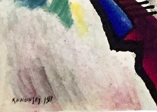 "Kandinsky depicted—through highly schematized means—cataclysmic events on one side of the canvas and the paradise of spiritual salvation on the other. In the latter painting, for instance, images of a boat and waves (signaling the global deluge), a serpent, and, perhaps, cannons emerge on the left, while an embracing couple, shining sun, and celebratory candles appear on the right.”